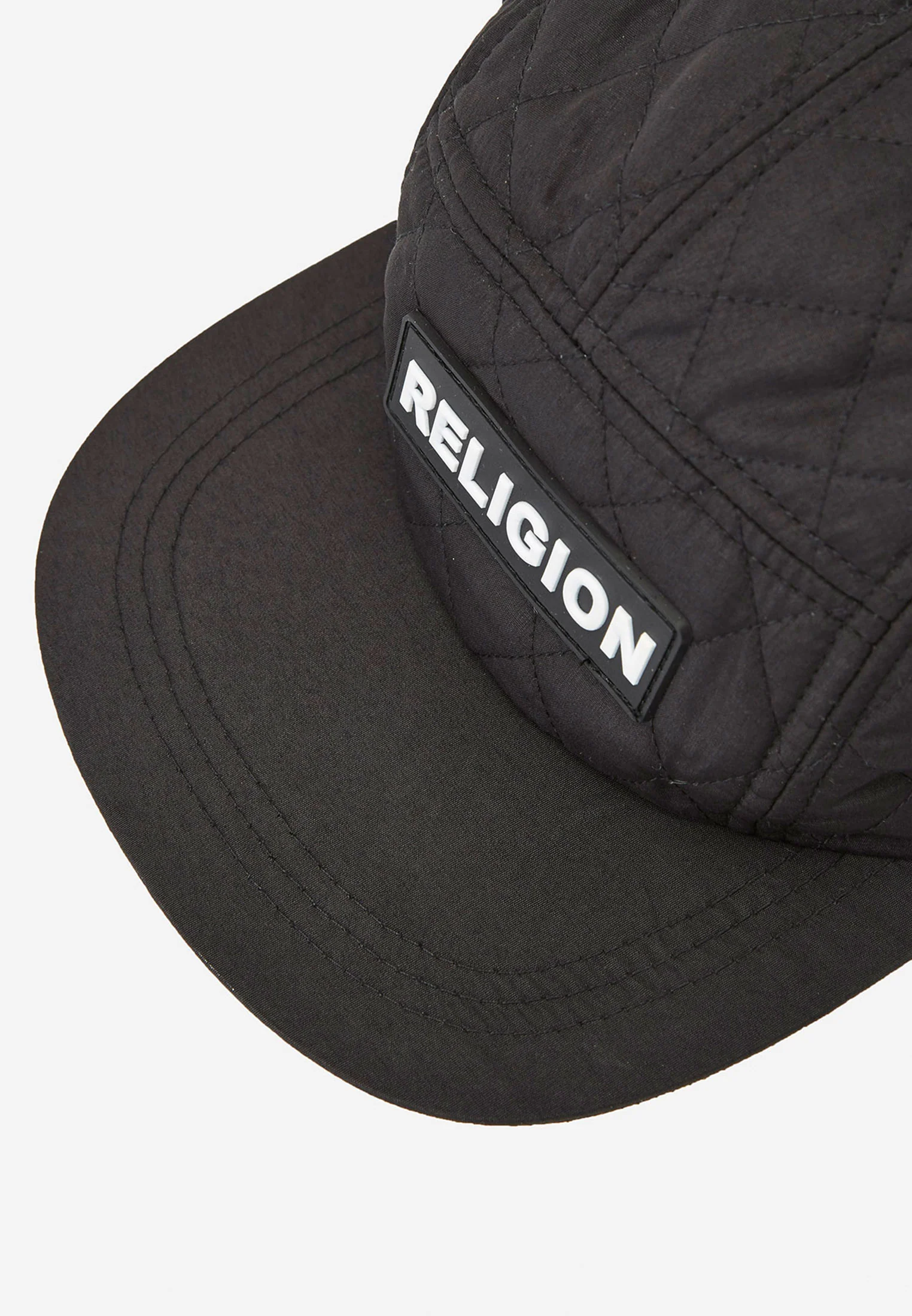 The Samo Trapper Cap in black features a flat visor, RELIGION branding embossed across the front, as well as side poppers for the ear flaps for additional cover during the winter months. The cap also has a pull cord at the rear, making it fully adjustable.
